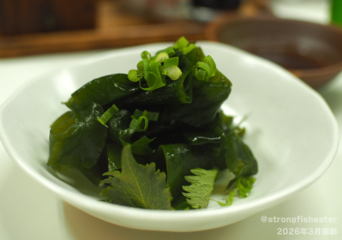 肉厚の生ワカメ、これをもしゃもしゃ食いながら飲むのです。かっこいいじゃろ。かっこよくない?