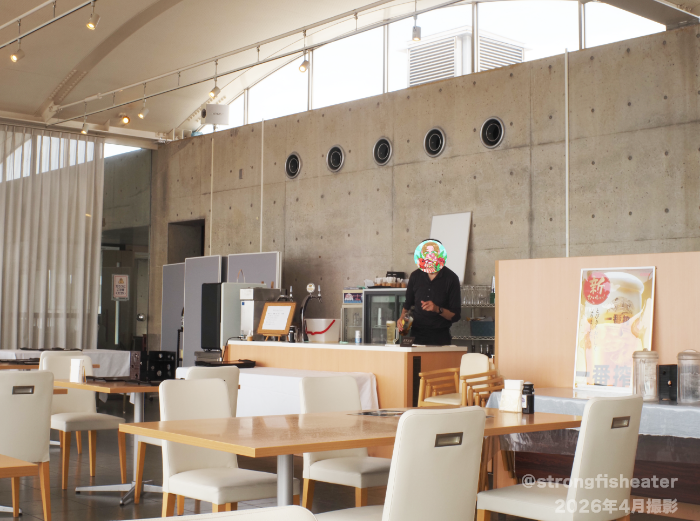 レストランはとても広くて開放的。マックスだと80人くらい入るんだとか。