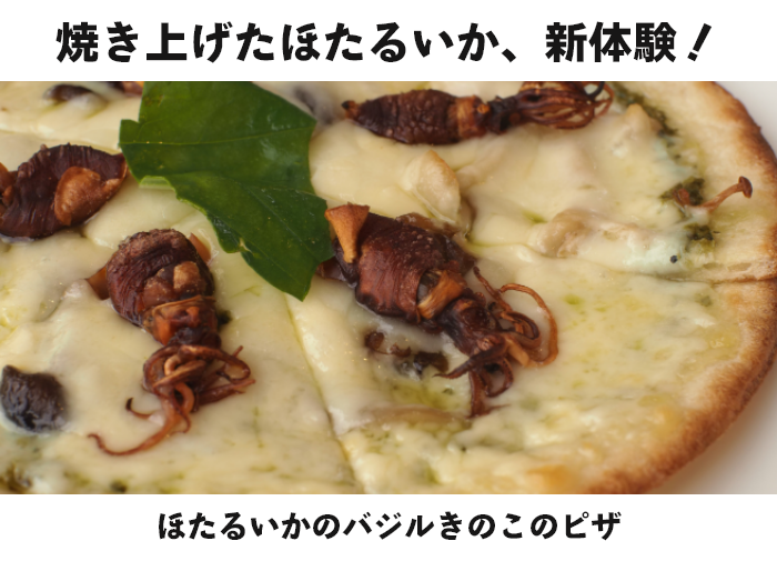 新鮮なホタルイカを高温で焼き上げてピザとして食べれるのはここだけなのでは???