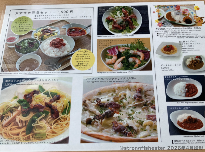 洋食でもホタルイカだっくだくです。富山豚のメニューも気になりました。