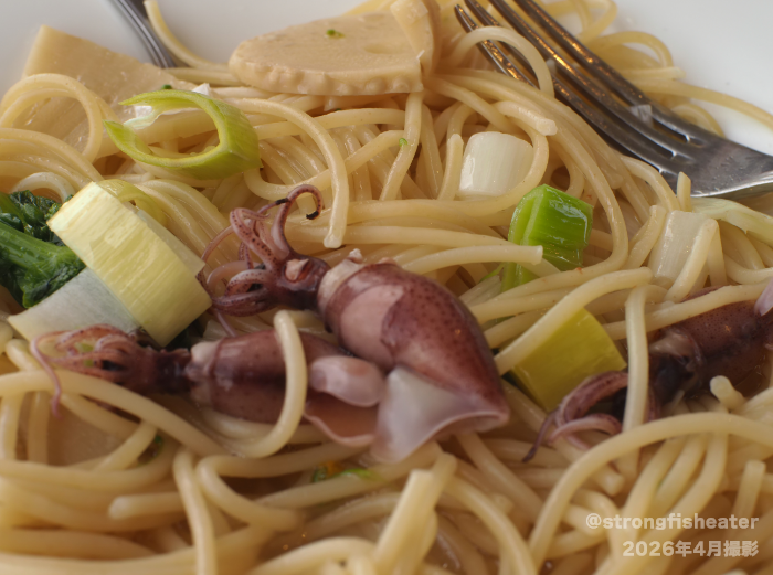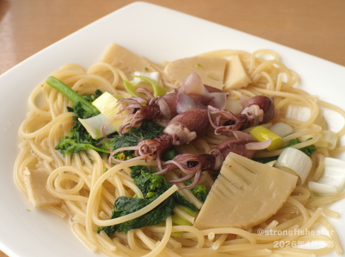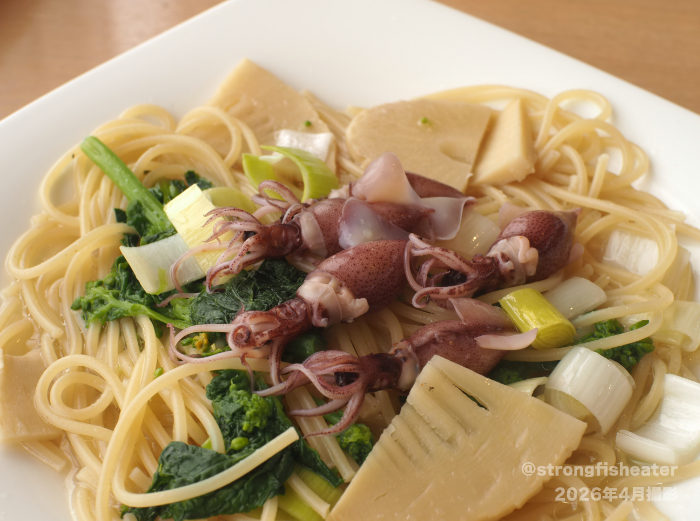 パンッパンのほたるいか&筍と菜の花、ネギのパスタが到着。