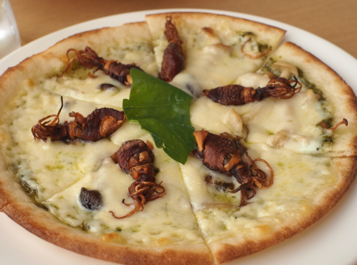 富山を離れると新鮮なほたるいかをピッツァに使おうなんて考えないだろうから、これぞ現地ならではの楽しみ方!
